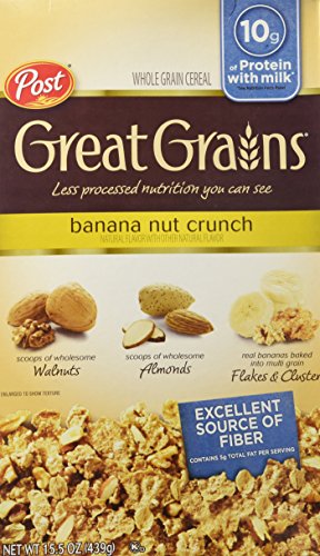 | 9 of 9 people found the following review helpful By This cereal is one of my favorites. However this seller is ripping people off. The same size boxes are in the store for about $3.50. Why would you ever pay $40 for 4 boxes? There are other sellers on amazon who sell 7 boxes for this price. 2 of 2 people found the following review helpful By S (Los Angeles, CA) - See all my reviews This review is from: Post Selects Cereals, Banana Nut Crunch, 15.5-Ounce (Pack of 4) (Grocery) This cereal has been one of my favorites for years, but unfortunately they have seemed to have changed the recipe a few times since the beginning. This cereal used to be less crisp in the late 90's and would soften easier in milk (that's when I think it tastes best, as the flavors really come out), but now it really has a harder granola-like texture and VAGUELY, if at all, has a banana flavor. It used to be very prominent, but not anymore. The clusters taste identical to Nature Valley's Crunchy Oat and Honey granola bars as of late, which is not really a taste that I would like with milk. The walnuts are also a standout, but are almost a no show as well. I'm disappointed that they would change such a good cereal to what it currently is. 3 of 4 people found the following review helpful By Jayne Writer (Albuquerque, NM) - See all my reviews This is an outstandingly good cereal. It is not too sweet, is delicious, and healthy, too. A nice choice for anyone wanting to live a healthy life. |