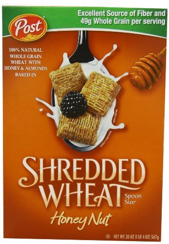 | 6 of 7 people found the following review helpful By RonP (Opelika, AL USA) - See all my reviews This review is from: Post, Shredded Wheat, Honey Nut Cereal, Spoon Size, 20oz Box (Pack of 5) (Misc.) I agree! Good cereal, but waaaaaaaaay too high! Astronomical pricing! Come on, MAN! 2 of 2 people found the following review helpful By Amazon Customer (Ketchum, ID United States) - See all my reviews Verified Purchase This review is from: Post, Shredded Wheat, Honey Nut Cereal, Spoon Size, 20oz Box (Pack of 5) (Misc.) great cereal but Walmart sells it for about $2.40 per box in the store, ridiculous pricing 1 of 1 people found the following review helpful By Verified Purchase This review is from: Post, Shredded Wheat, Honey Nut Cereal, Spoon Size, 20oz Box (Pack of 5) (Misc.) This cereal is the best of every world: crunchy, sweet, not too sweet, healthy, but not too healthy. |